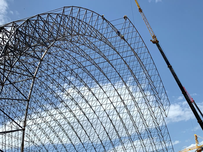 (2)网架加工前应对现场尺寸进行复测,确认无误后方可进行加工、安装;网架制作、运输、安装应遵守《空间网格结构技术规程》JGJ7-2010、《钢网架阆中螺栓球节点》JG/T 10-2009、《钢网架阆中螺栓球节点用高强度螺栓》 GB/T 16939-2016、《阆中钢结构阆中工程阆中施工规范》 GB50755-2012、《阆中钢结构阆中工程阆中施工质量验收标准》 GB50205-2020。